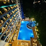 This 4-star hotel offers dining experiences designed to cater to diverse palates, rendering it a standout among Golden Sands hotels. Guests can savor international cuisine in the classical restaurant or enjoy the buffet-style main restaurant's open-air terrace. With the inclusion of a lobby bar, pool bar, and sky bar, the hotel promises atmospheric venues for enjoying meals and drinks.